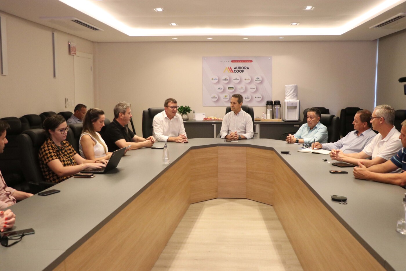 A Cooperativa Central Aurora Alimentos (Aurora Coop) sediou na última terça-feira (21), na matriz, em Chapecó (SC), o encontro de uma comitiva que trabalha para definir estratégias de viabilização da Rota do Milho integrando Brasil, Argentina e Paraguai. Programado pela Associação Catarinense de Criadores de Suínos (ACCS) e pelo Bripaem (Bloco Regional de Governadores, Prefeitos, Autoridades e Empresários do Mercosul), a visita reuniu empresários, prefeitos e representantes dos governos do Paraguai, Argentina e das secretarias de Articulação Internacional e da Agricultura de Santa Catarina.