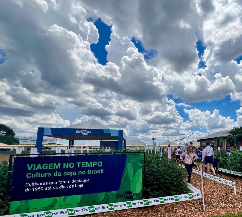 Linha do tempo com cultivares conta história da soja no Brasil durante Show Rural